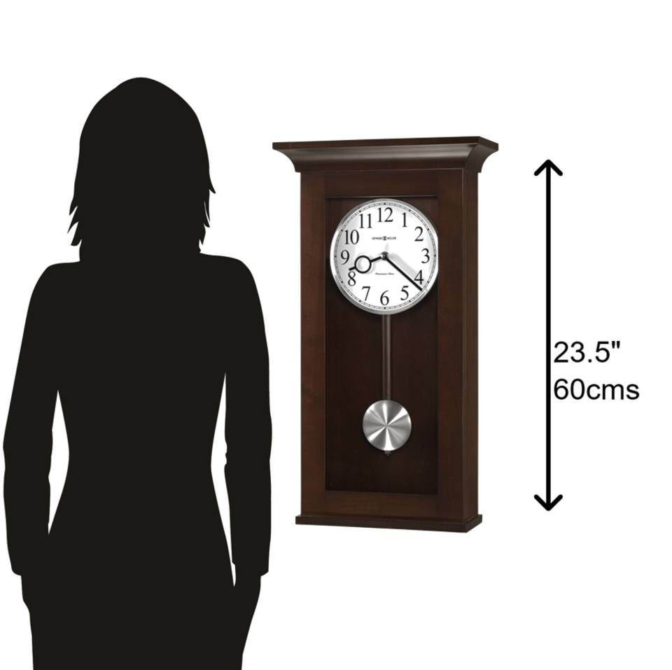 WALL CLOCK: The Braxton Wall Clock features a Black Coffee finish on select hardwoods and veneers to complement your home decor. The circular pendulum bob is finished in brushed silver with a Black Coffee wooden pendulum stick.