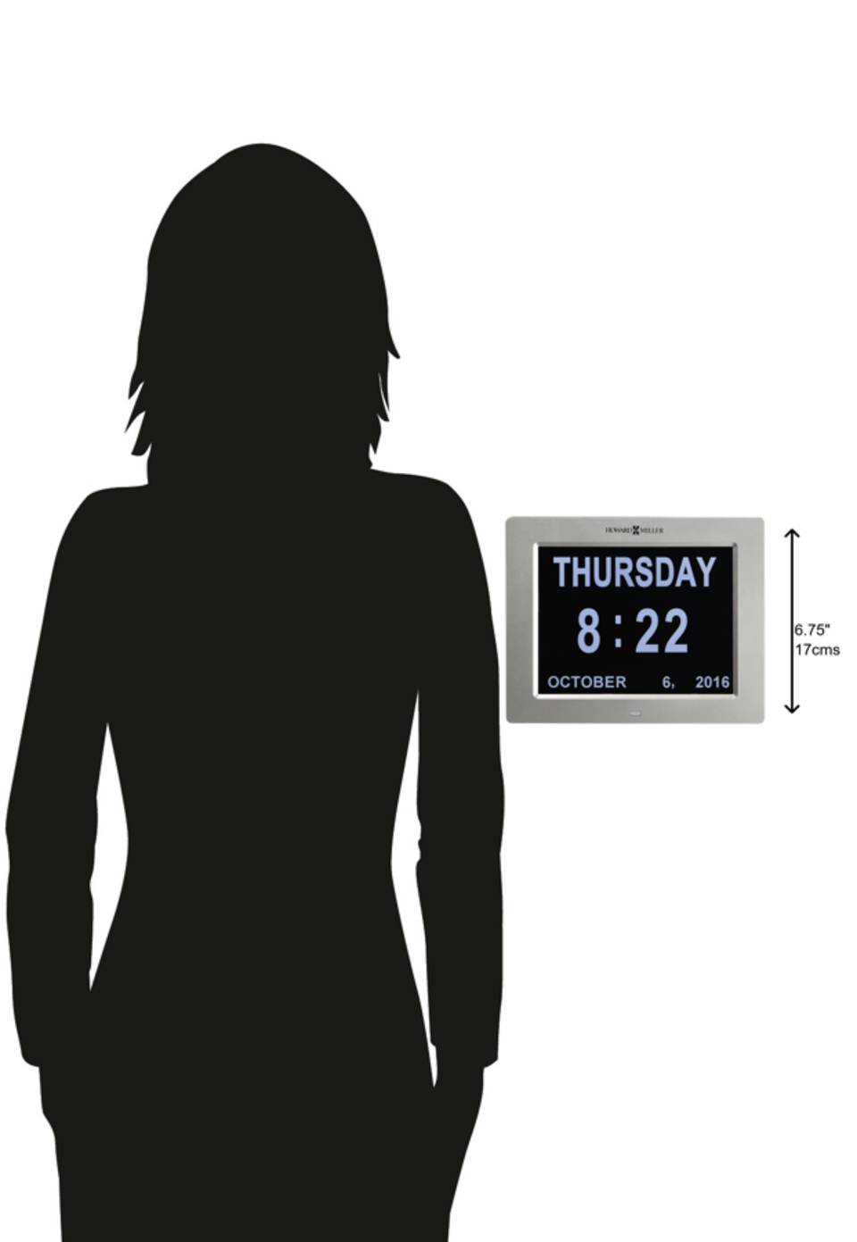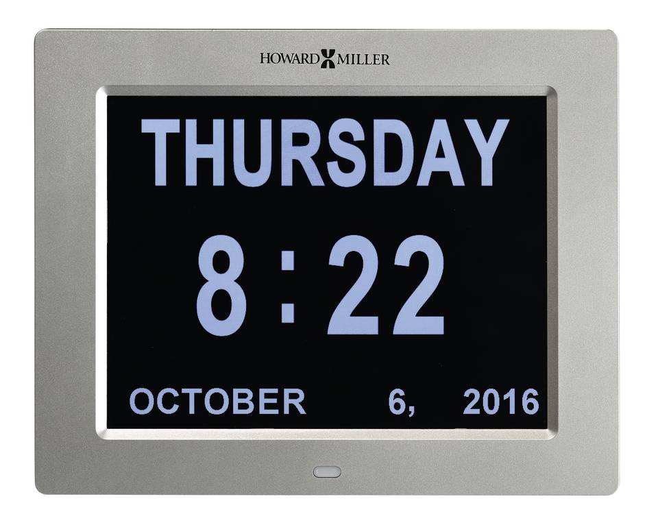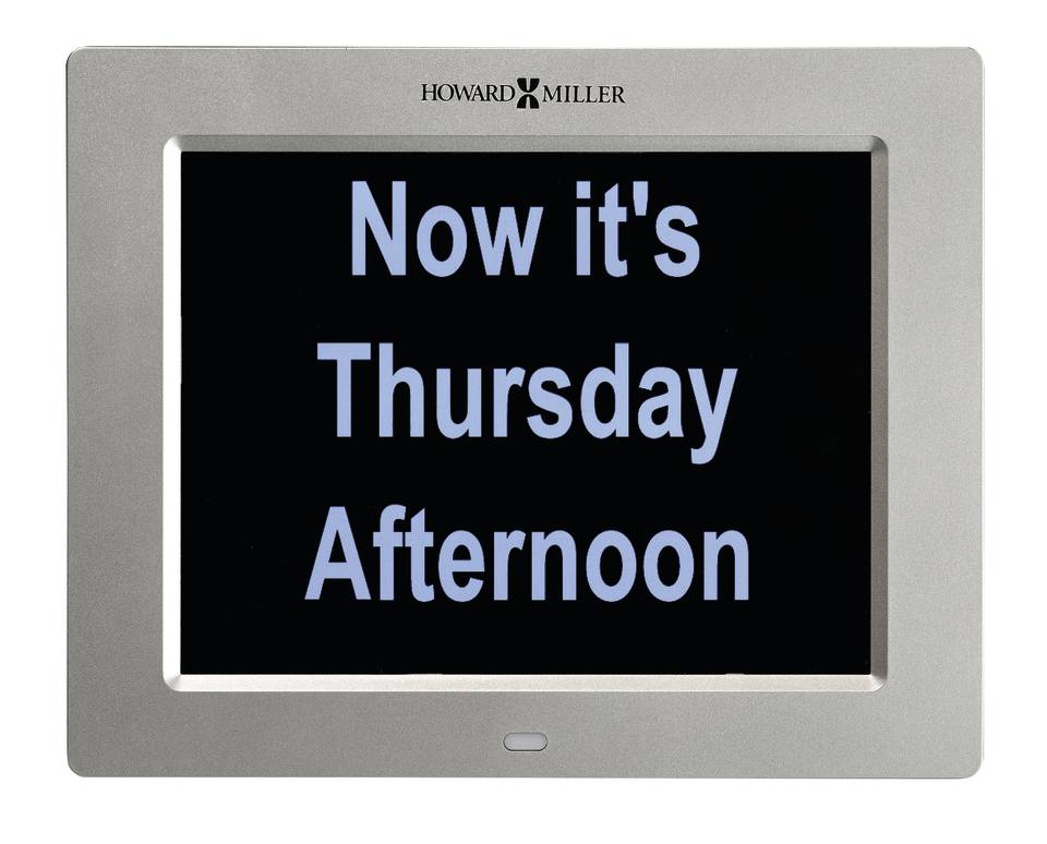A unique digital wall clock, this clock is designed to help people suffering from memory loss or dementia, poor or impaired eyesight, or those who have a hard time comprehending abbreviated words.