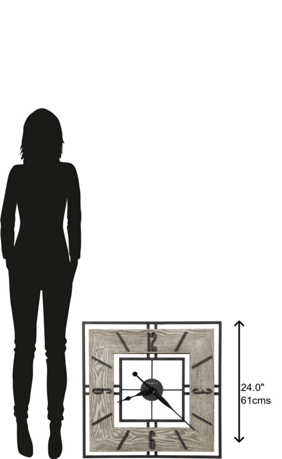 Durable Construction: The frame of this oversized wall clock is crafted from durable wrought iron with an aged charcoal finish. Attached to the frame is a sturdy ash-veneered panel, which has a cool gray finish to complement any interior color palette.