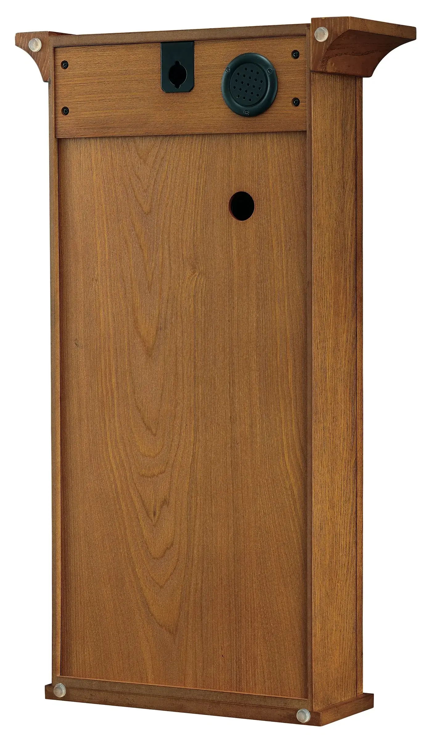 This transitional wall clock's simplistic style and clean lines are the perfect mix of traditional elegance and contemporary lines and texture, with a natural finish that will add warmth to your home. Its contemporary spin on a classic timepiece makes it perfect for accenting your other home décor while adding a subtle statement piece.Clock Design: This wall clock features an Oak Yorkshire finish on select hardwoods and veneers. The pendulum includes an Oak Yorkshire finished wood stick and a spun brass-finished bob.Dial Design: An off-white dial, surrounded by a brushed brass-finished bezel, features black Arabic numerals, a minute track along the outer edge, and black spade hands. The dial and pendulum sit behind a flat glass pane.Chimes: A single-chime movement plays Westminster chimes on the hour and counts the hour. There’s also an automatic nighttime chime shut-off for convenience.