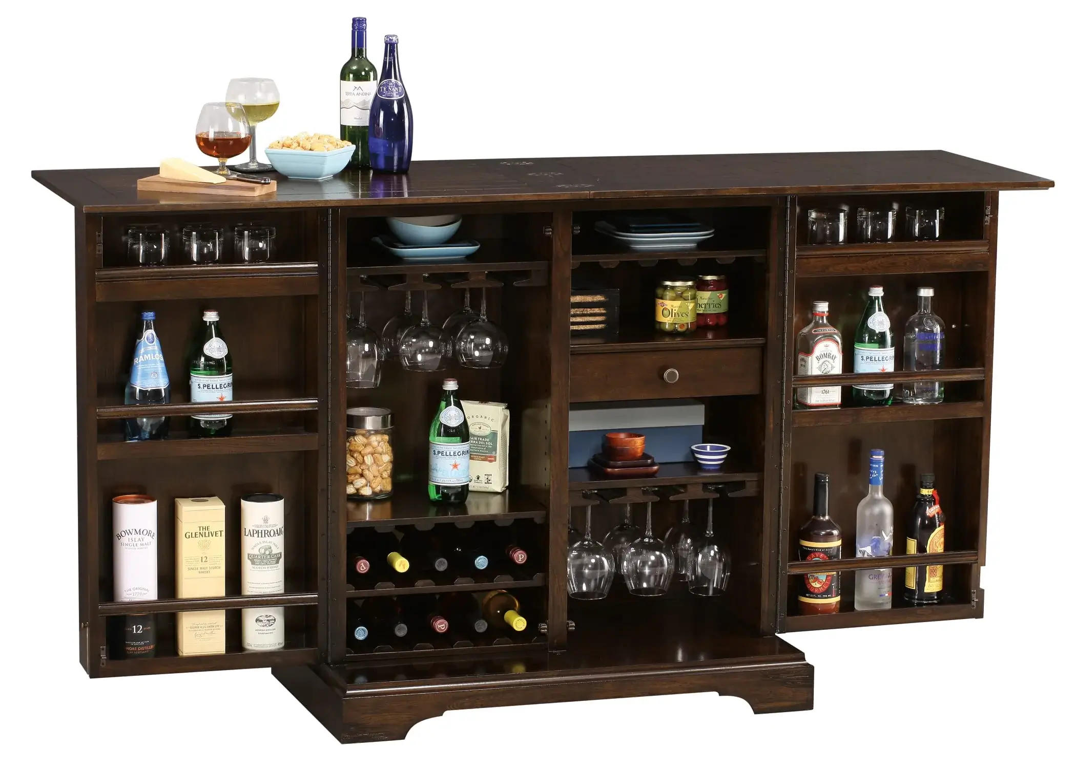 - 180-degree door hinges allow doors to open wide for easy serving.