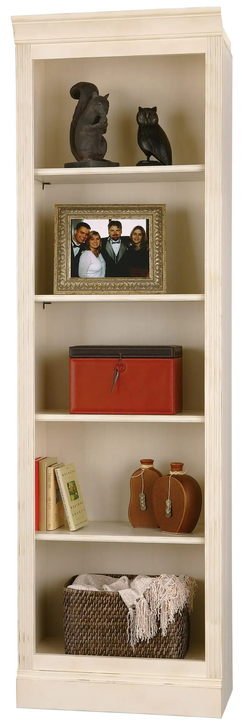 Careful Craftsmanship: Enjoy the beautiful materials that create this white bookcase. The entire piece is finished in antique vanilla on select hardwoods and veneers.
