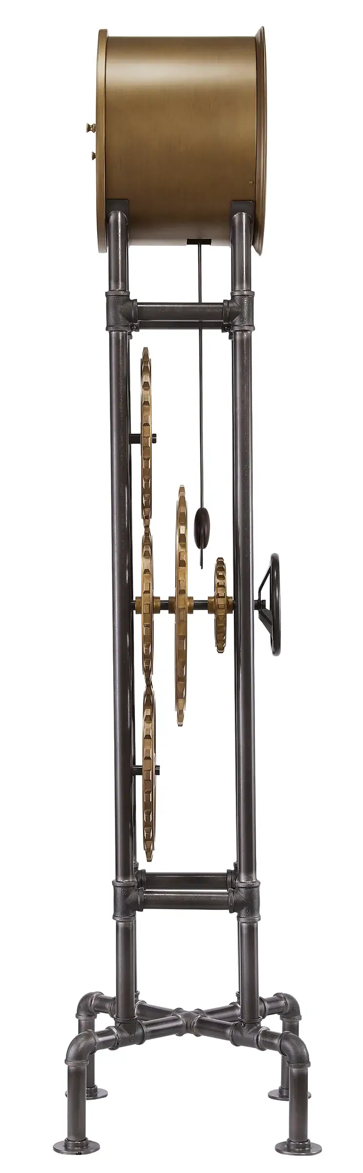 Place the Cogwheel metal grandfather clock in your living room for a steampunk-inspired style. The rotating gears operate with the hand wheel for antique flair, while the distinctive pendulum bob invokes the look of an old-fashioned mechanical clock.