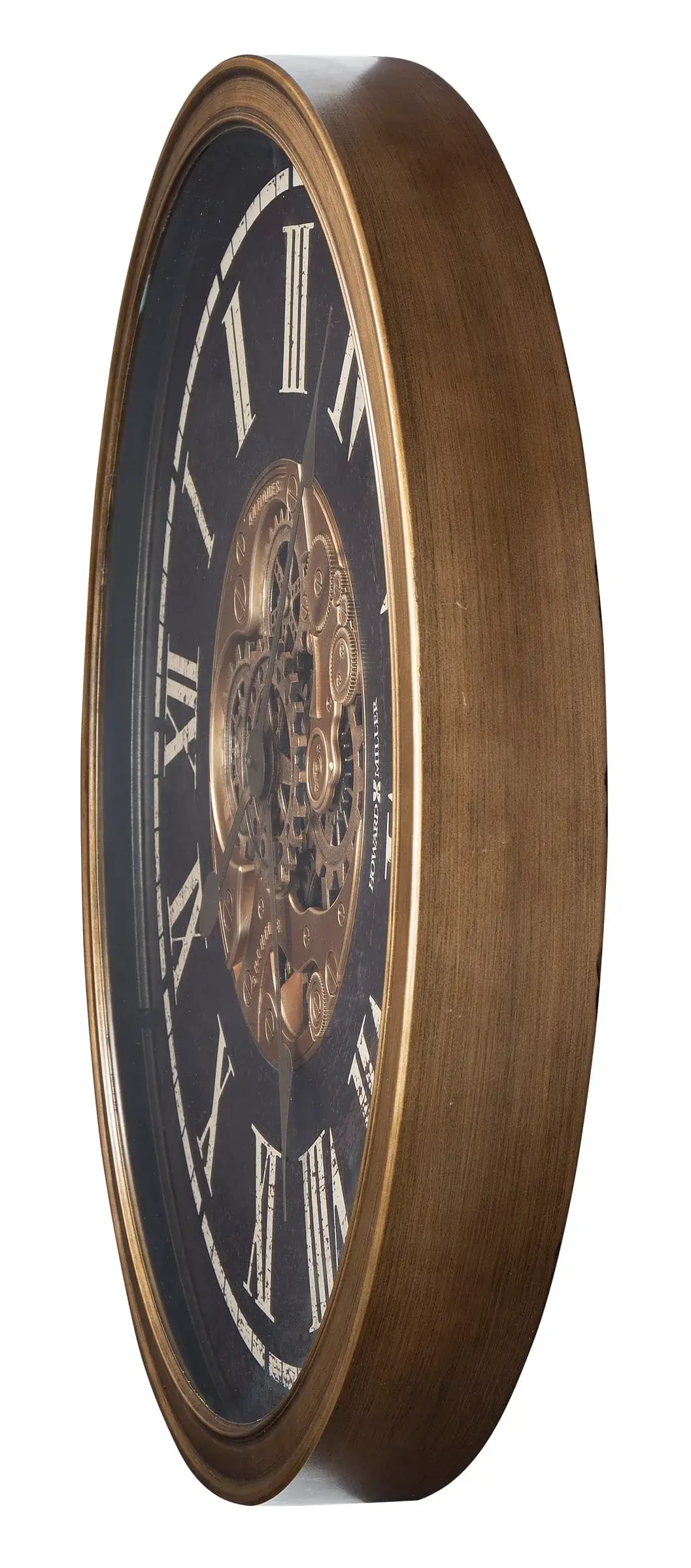 - Moving gears are incorporated into the clock's design, enhancing the overall dynamic while creating an attention-grabbing focal point.