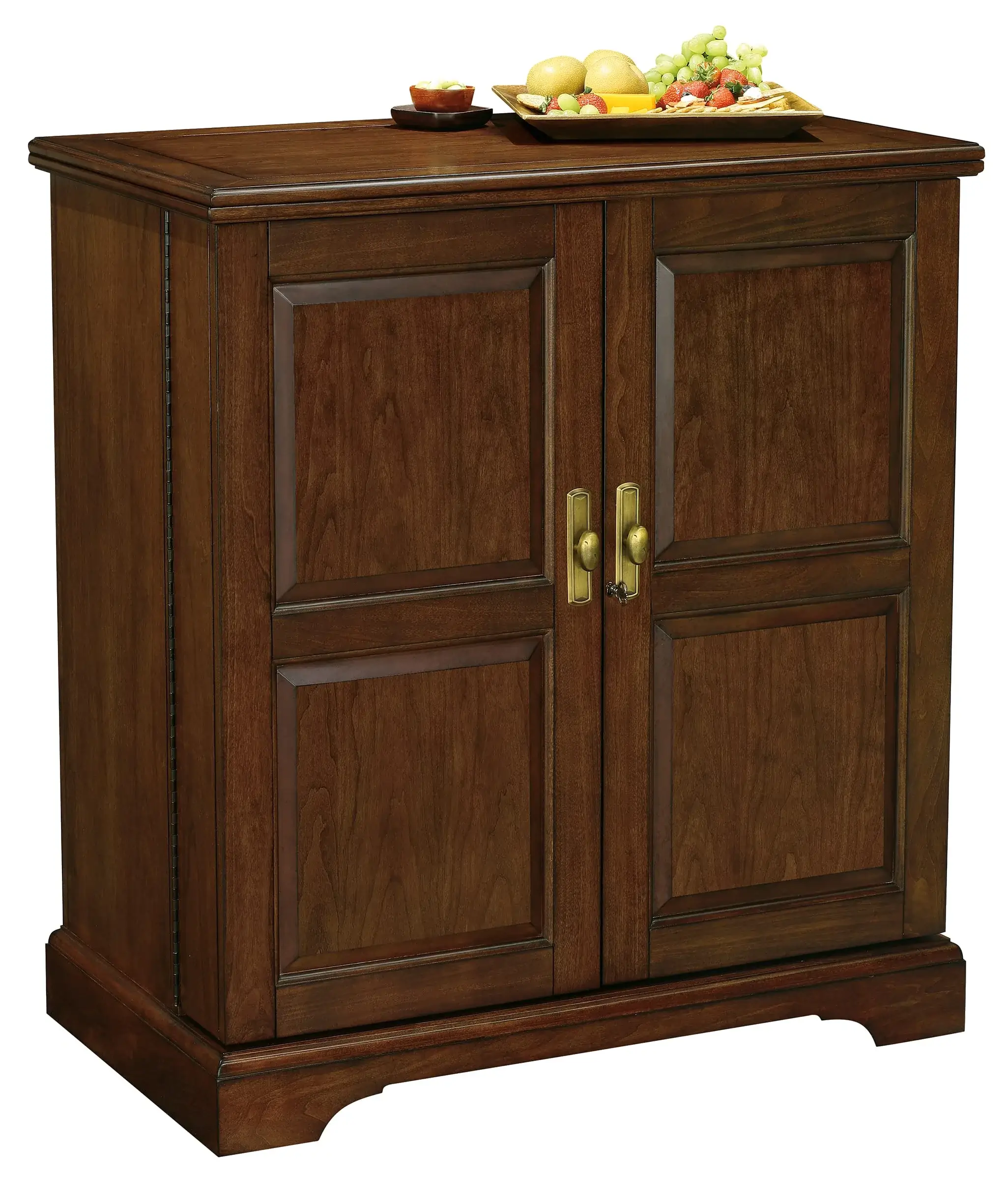 - This portable, Hide-a-Bar cabinet is finished on all sides and features decorative raised panels on the two front doors and on the back.