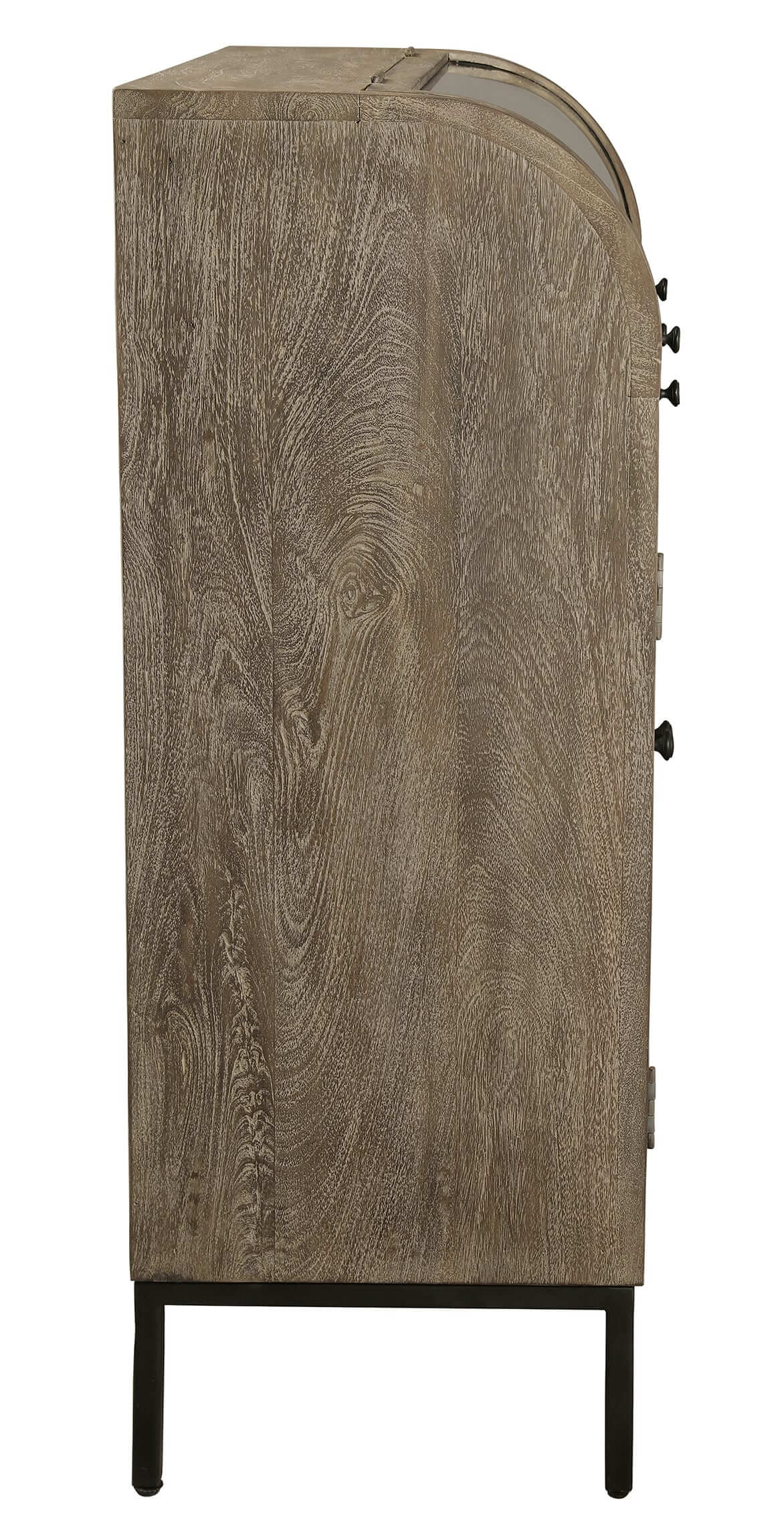 Put your beverages and glassware on display with the Paloma wooden bar cabinet. Complete with a weathered gray finish, curved glass door, and pull out shelf, this antique cabinet is a great way to store and admire your beverage collection.