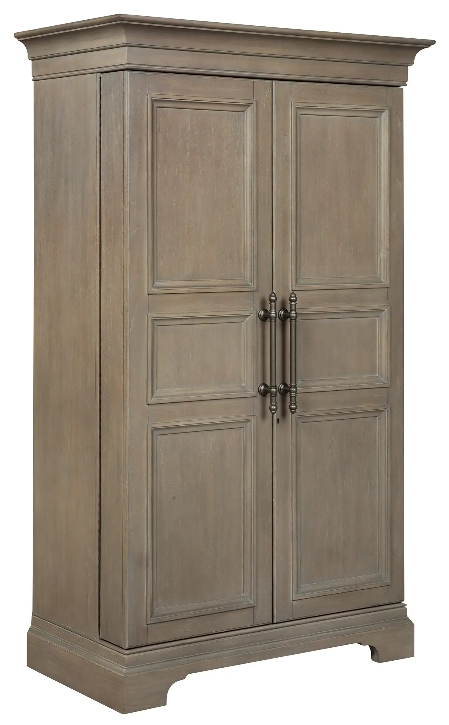 Ideal for the wine or spirit connoisseur is the Passport wooden bar cabinet. This stately piece is big on size and impression with its grand structure, complete with moldings, shelves, wine storage, drawers, and more.