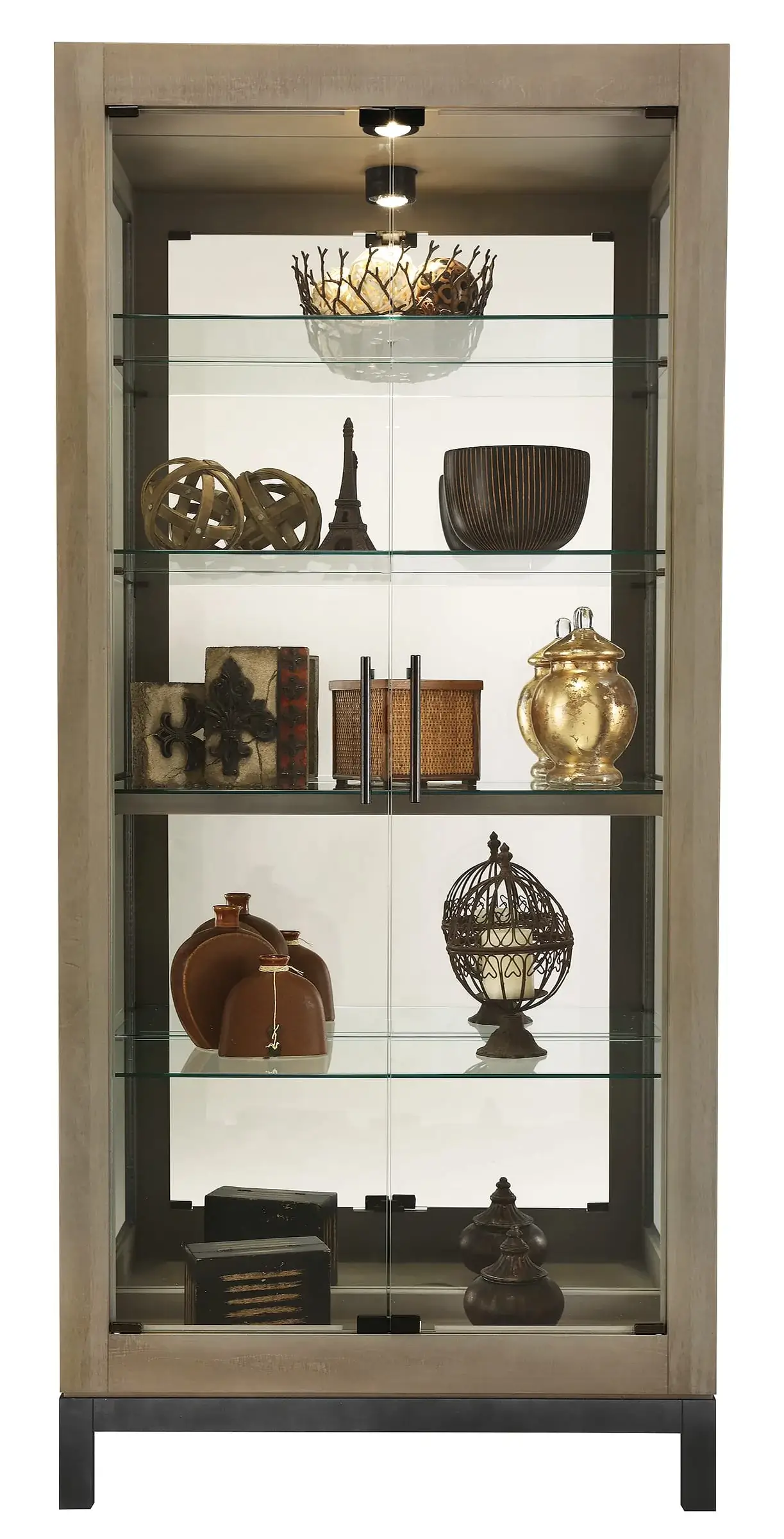 Careful Craftsmanship: This lighted curio cabinet features an aged gray finish on select hardwoods and veneers. The finish is wire brushed for a natural, reclaimed wood appearance, completing the careful craftsmanship of the entire piece.