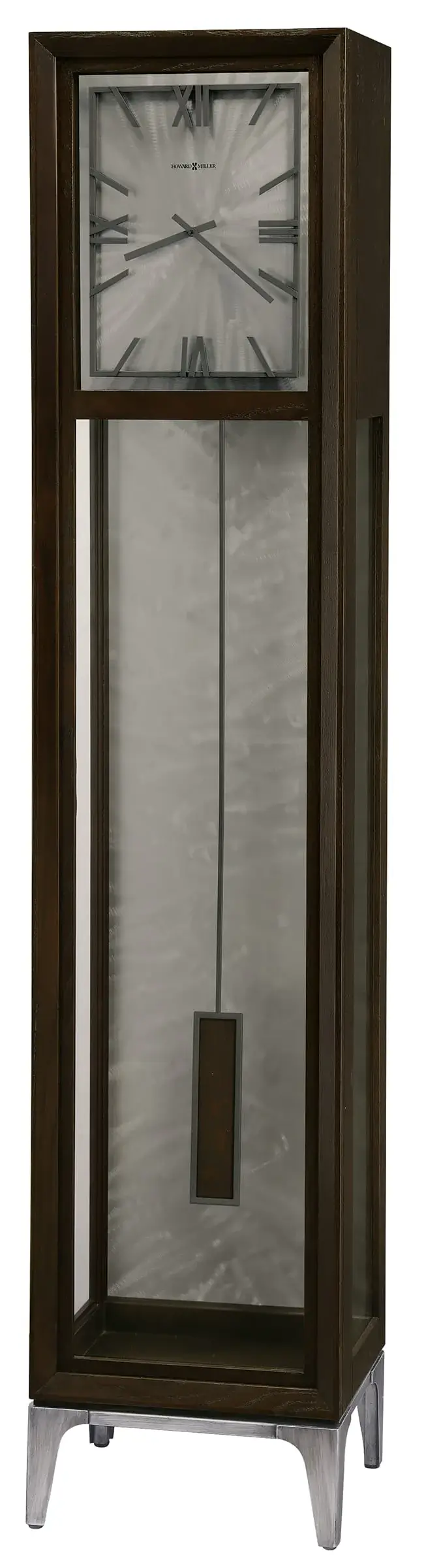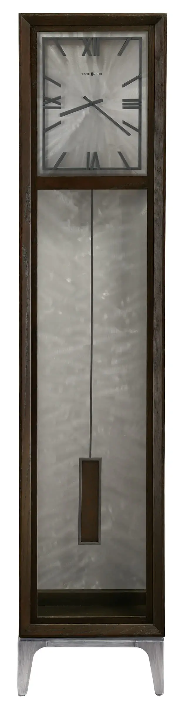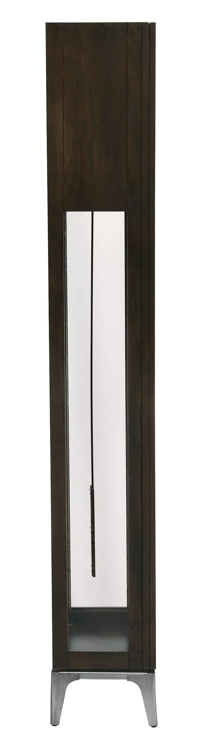 Stunning Pendulum: The Reid Grandfather Clock also features an aged charcoal-finished pendulum with a rectangular bob surrounding a woodgrain insert that swings in front of a machined steel background.