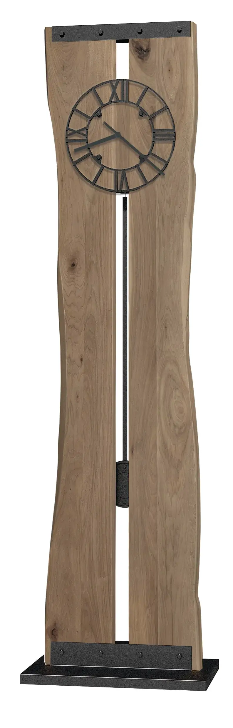 Earthy Beauty: The solid hickory hardwood on this handsome clock features distressing, knots, and natural edges, all of which contribute to its one-of-a-kind character and enduring appeal. The live-edge timepiece also has medium charcoal-finished metal accents with silver undertones that lend it a touch of modernity.