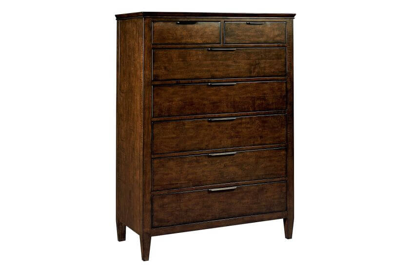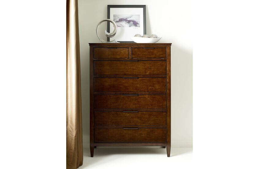 The vertical chest is important for its capacity in a relatively small amount of floor space. But it can also serve to add needed vertical interest in the bedroom. The Aiden is a 56 inch tall, solid wood chest with full depth drawers to make the most of the space. It also features removeable dividers in the second and third drawers from the top for added organization and flexibility.