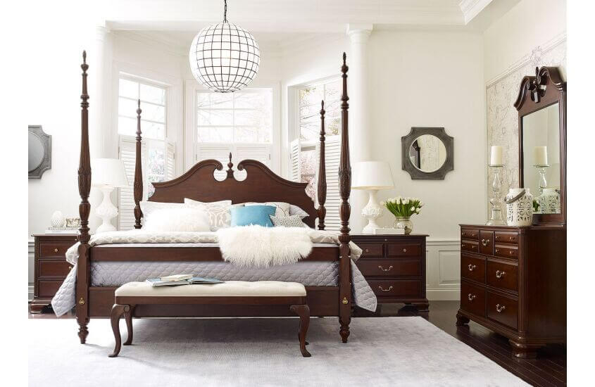 The collection is crafted with hand selected, solid wild black cherry from the Allegany mountains with a finish that showcases the natural beauty of this sought after lumber. Within the collection is a balanced blend of the 18th Century classics with modern touches for an updated look. Intricate dental mouldings, reeded posts, bead-framed drawers and subtle hand carvings speak to the tireless focus of the individual artisans. Meanwhile, a nod toward modern style comes from design cues like the brushed gold tone hardware and textured fabric touches. Hadleigh combines the best features of new furniture technology with the authentic benefits of solid wood furniture in an heirloom-quality construction. Notable elements include the Kincaid Soft-Close drawer glide system. Kincaid also utilizes the best of the old-world construction techniques such as English dovetails, mortise and tenon construction, floating tops and panels, full dust proofing, and multi-step hand-rubbed finishes.