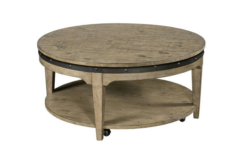 The round version of the Artisan’s coffee table has a casual, organic style that fits well with most family room seating configurations. It gets its inspiration from the rugged industrial era of America and maintains that character throughout with its solid wood construction. Removable casters are an added feature to make life a little more convenient.
