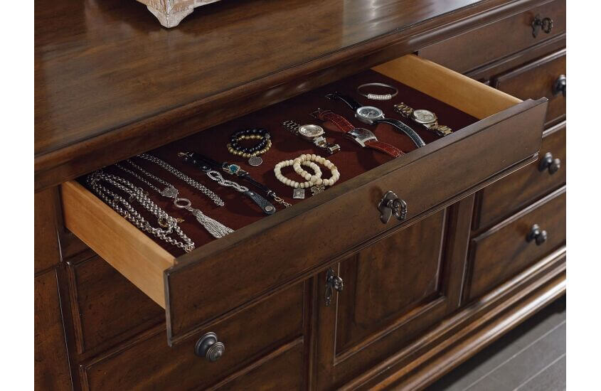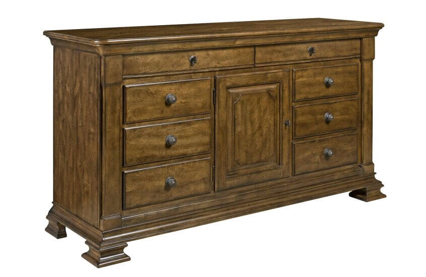 At 68 inches long and 21 inches deep, the Basilica Door Dresser is the flagship dresser in the Kincaid assortment. It features soft-close drawer glides, a jewelry tray, and our legendary solid wood construction. It is made of solid alder and incorporates the stylish hand-rubbed finish and hewned tops for a unique, vintage personality.