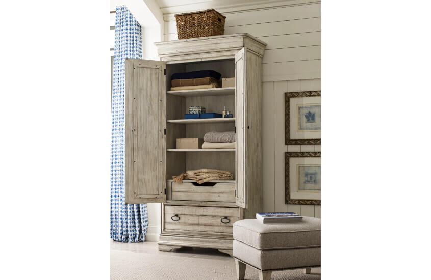 Selwyn by Kincaid balances the ‘best of’ with the ‘what’s next’ in a collection that meets the moment with a timeless charm. Capturing the character of a classic French design, the Louis Philippe inspired silhouettes provide the framework for a more casual approach. The use of genuine solid wood constructed with natural-planked panels gives the Cottage White finish a time-worn and relaxed feel. This mood carries on through the hardware and fabric details of the collection where burnished metal work and understated textures are the seasoning that makes the recipe complete.