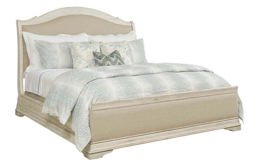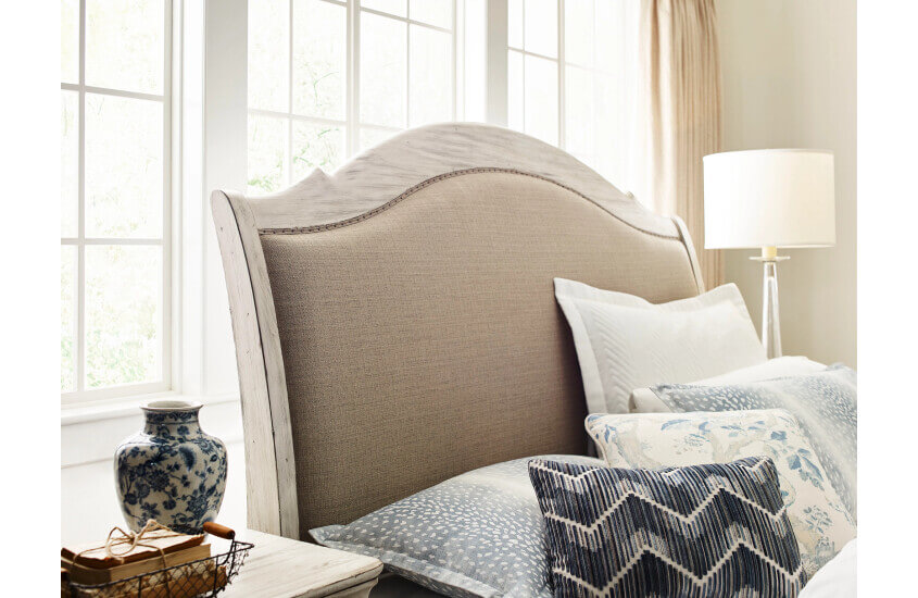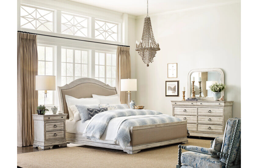 Selwyn by Kincaid balances the ‘best of’ with the ‘what’s next’ in a collection that meets the moment with a timeless charm. Capturing the character of a classic French design, the Louis Philippe inspired silhouettes provide the framework for a more casual approach. The use of genuine solid wood constructed with natural-planked panels gives the Cottage White finish a time-worn and relaxed feel. This mood carries on through the hardware and fabric details of the collection where burnished metal work and understated textures are the seasoning that makes the recipe complete.
