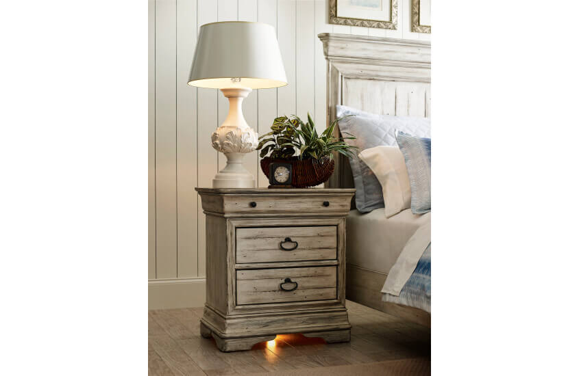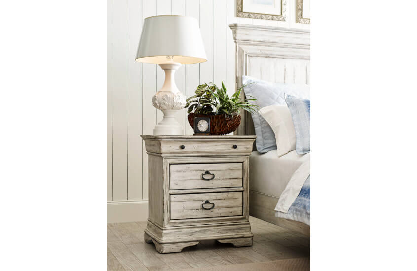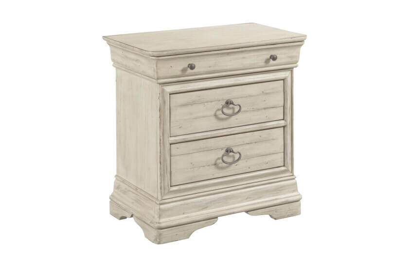 Selwyn by Kincaid balances the ‘best of’ with the ‘what’s next’ in a collection that meets the moment with a timeless charm. Capturing the character of a classic French design, the Louis Philippe inspired silhouettes provide the framework for a more casual approach. The use of genuine solid wood constructed with natural-planked panels gives the Cottage White finish a time-worn and relaxed feel. This mood carries on through the hardware and fabric details of the collection where burnished metal work and understated textures are the seasoning that makes the recipe complete.