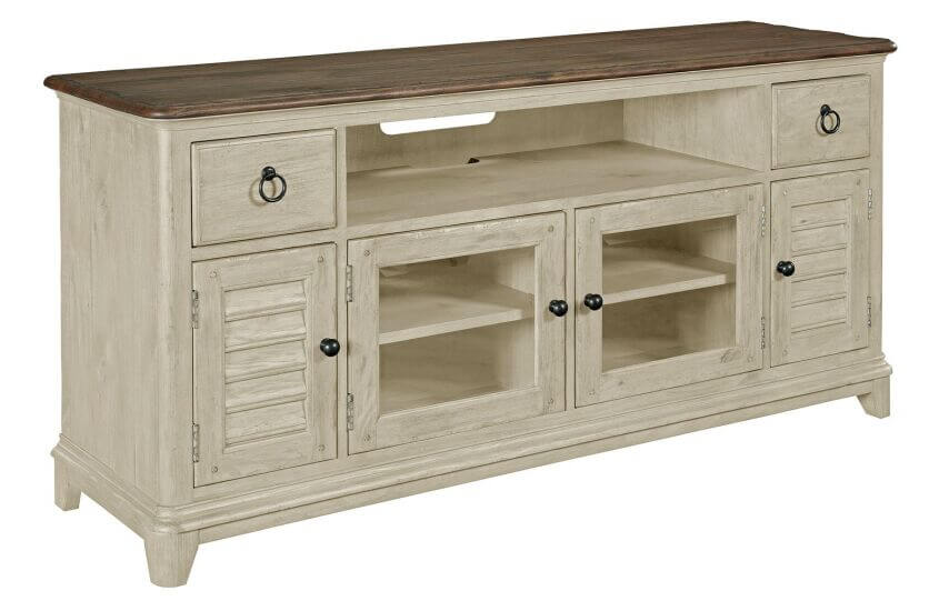 Take the focus off of the television and onto something more appealing! The Weatherford entertainment unit comes in two sizes and features both closed and open storage for media components, a sound bar, or any of the myriad other media accoutrements we keep up with! Made of solid pine.