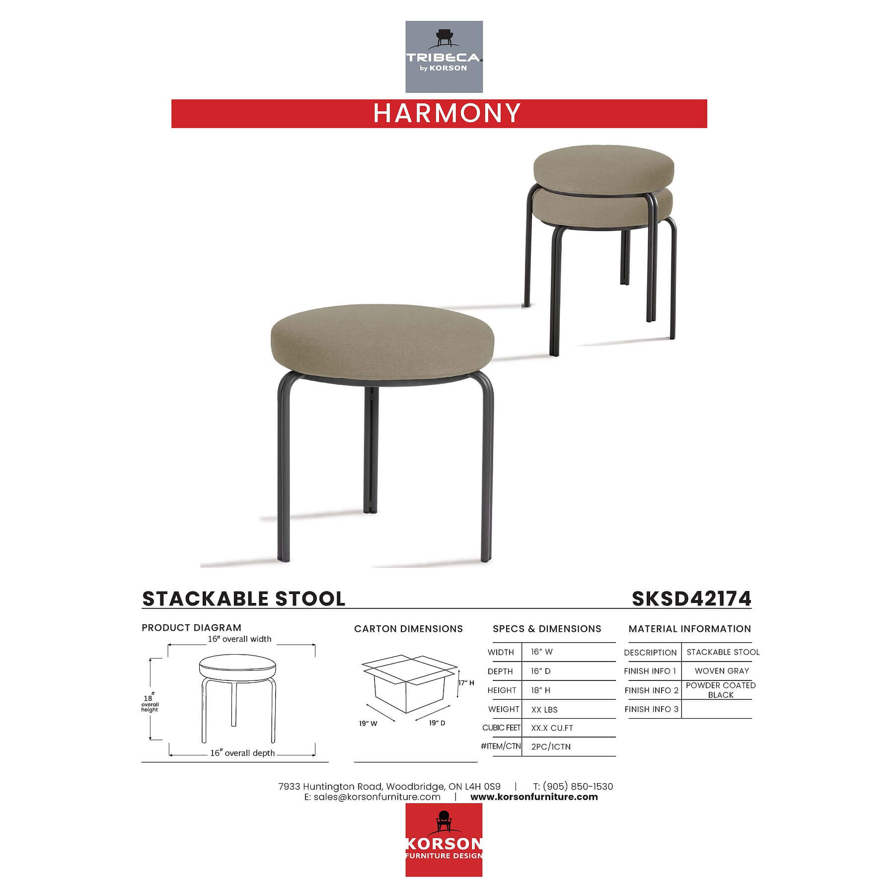 KORSON Harmony Stackable Stool SKSD42174 SET OF TWO