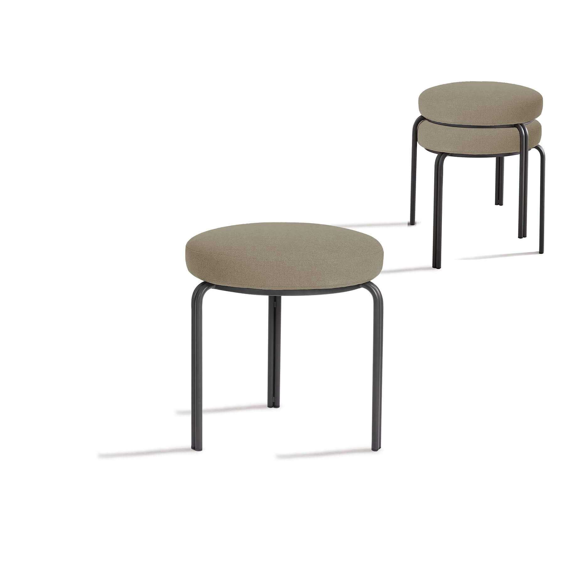 Harmony Stackable Stool. This stool that features a stackable design with straight legs will be a great space saver for your home. lightweight powder coated black steel frame supports a thick padded cushion and gives this stool a contemporary look that pairs well with both traditional and modern design styles. The thick foam padding on the seat provides guests with a comfortable seating option for times when you need to entertain them. The stunning structure of the framing makes the seat stable and capable of being matched with almost any motif or decor.