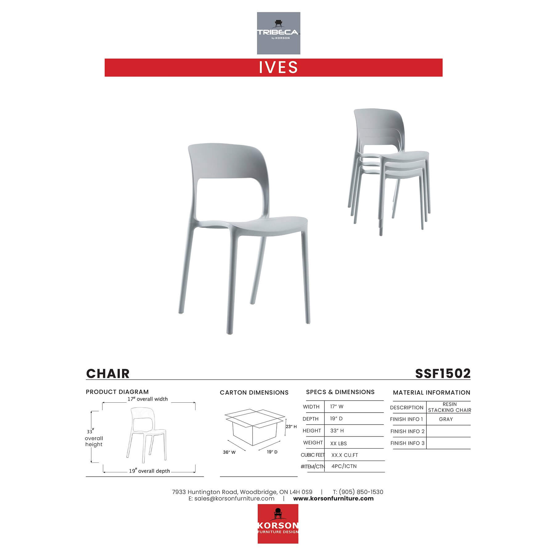 KORSON Ives Stacking Chair Gray SET OF FOUR SSF1502