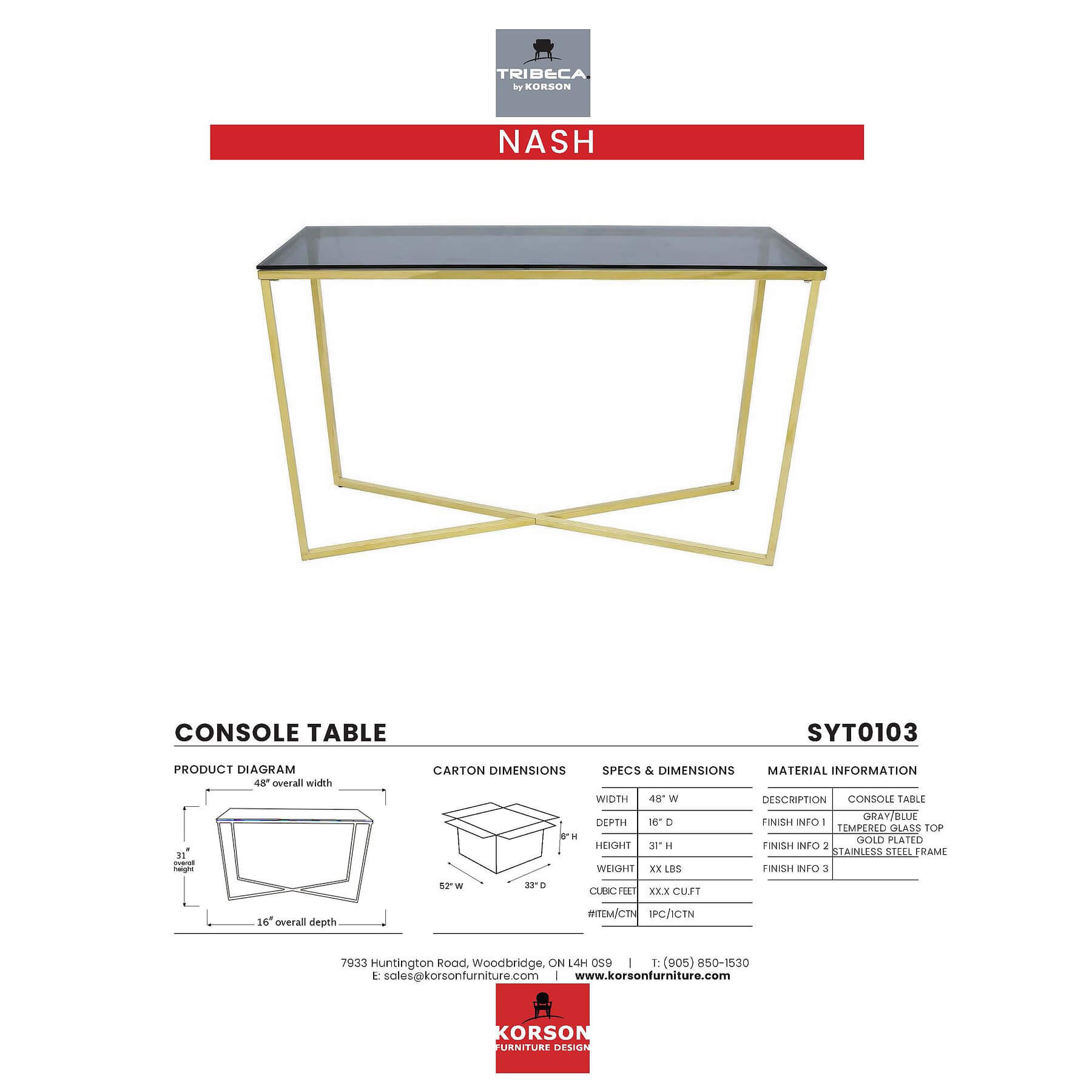 KORSON Nash Console Table SYT0103