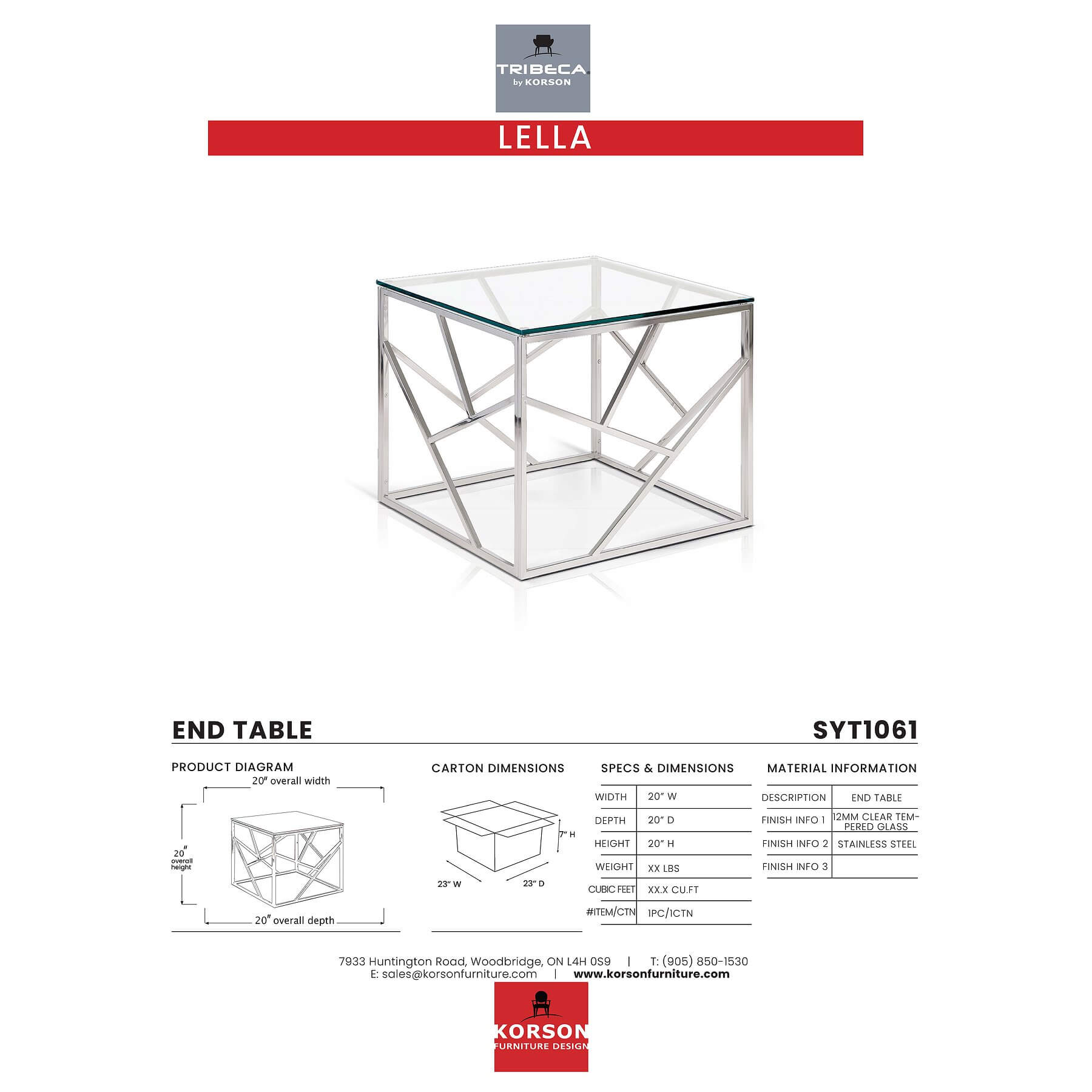 Finish: Polished Stainless Steel, Clear Tempered Glass.