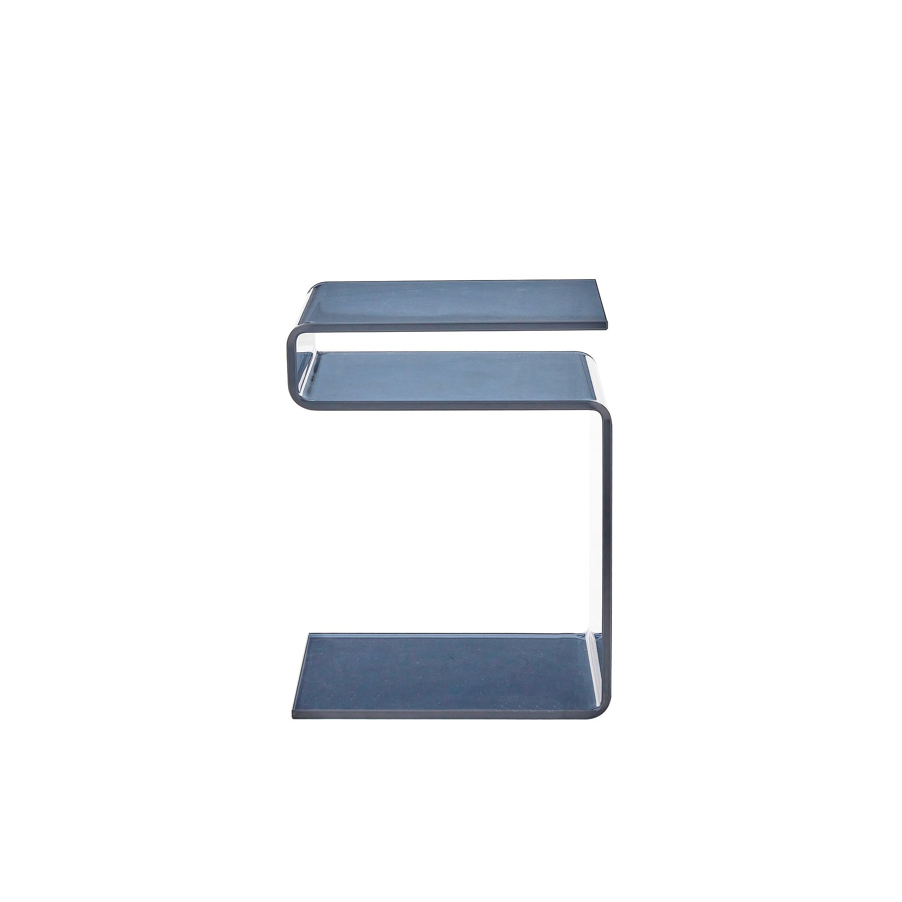 Wave 2-way side table. Balance out your style with this one-of-a-kind accent table cleverly designed for versatility, the Two-Way Side Table is a strikingly simple, shape-shifting piece. Crafted from 12mm smoke gray glass, the table playfully interacts with its surroundings. The 2-way side table design can be used horizontally as an eye-catching side table which side pocket offers you extra space to store your newspapers, magazines, and books while saving your space, or vertically as a stand that intersects a sofa to keep drinks and remotes handy.