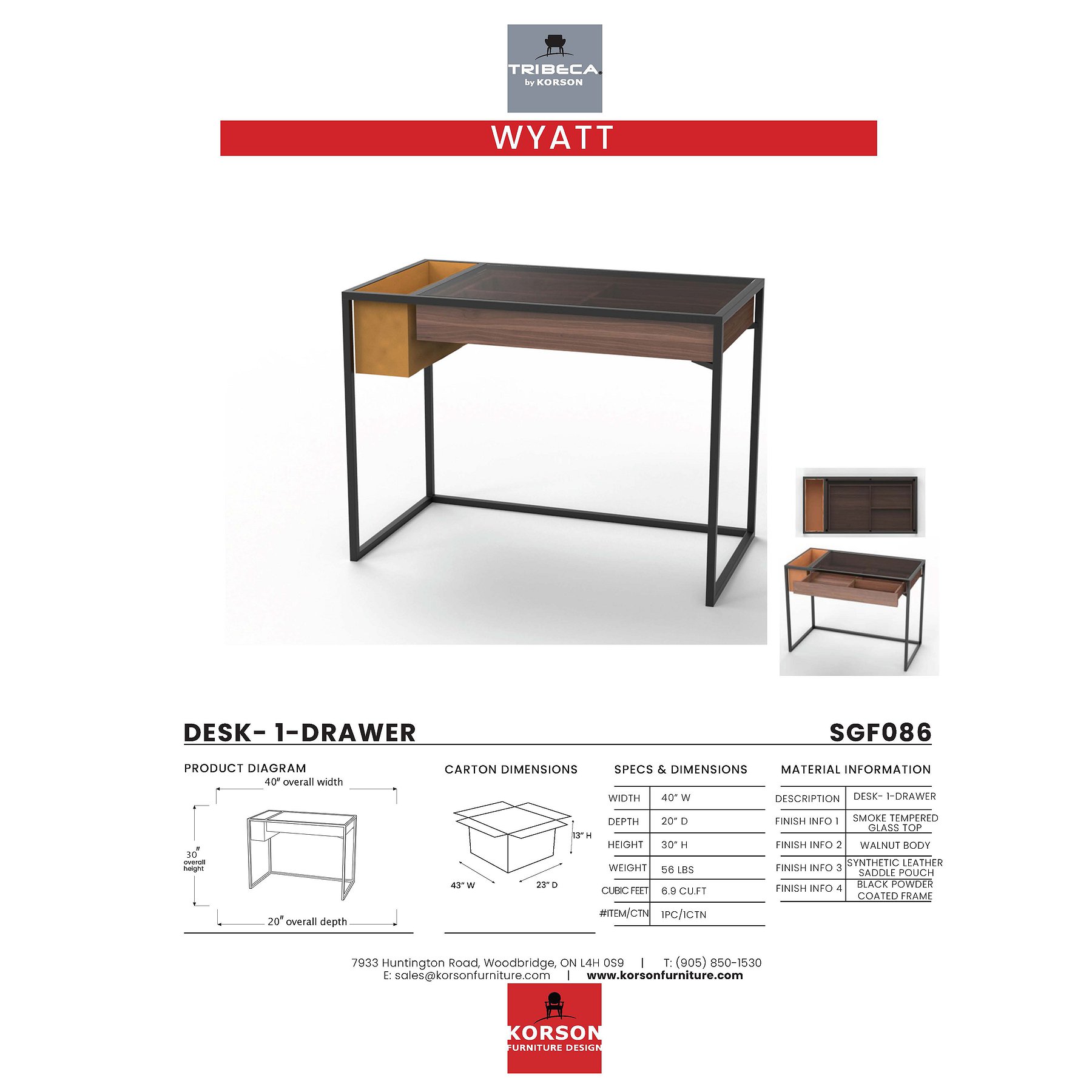 Wyatt Desk with 1 Drawer. Create a stunning work space with the modern desk. add a distinctive designer touch to any space, without the designer price tag. no matter where you place this desk, you’ll love the stylish look it adds to any room.