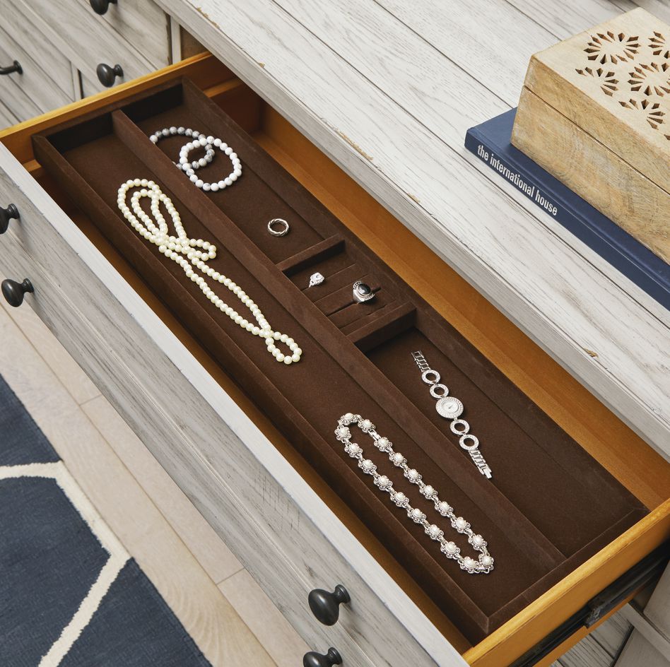 - 8 Drawers, Jewelry Tray in Top RSF Drawer. Felt lined top drawers, Cedar lined bottom drawers.