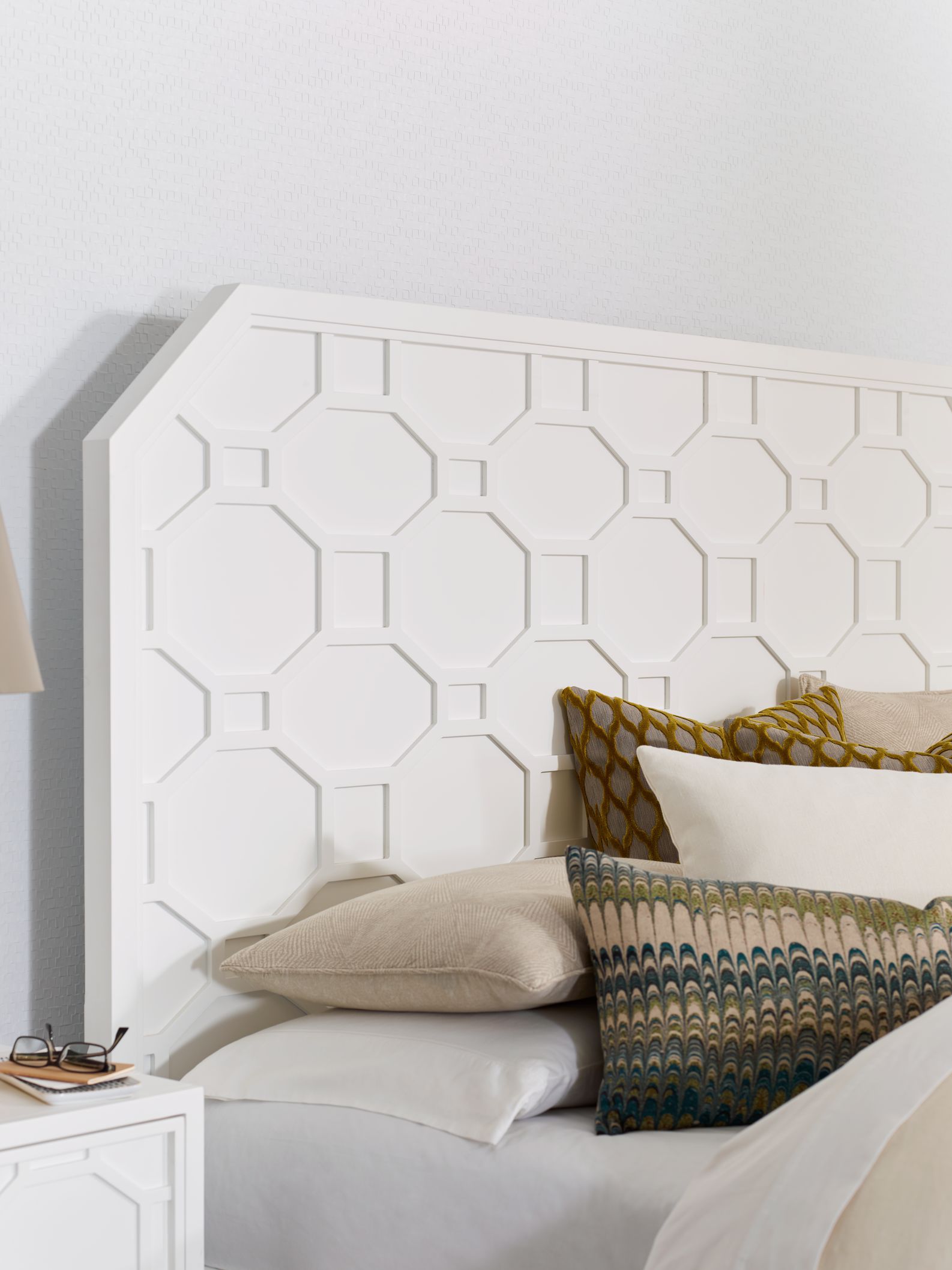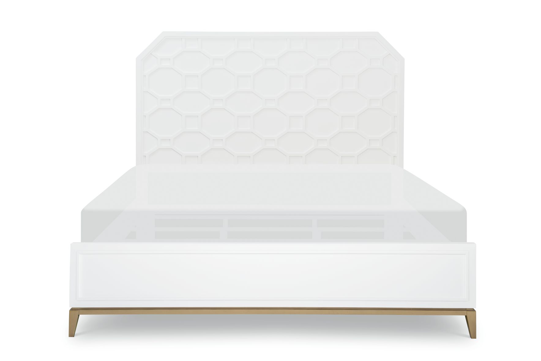 The clean, transitional lines of the white finish are offset with gold accents and
