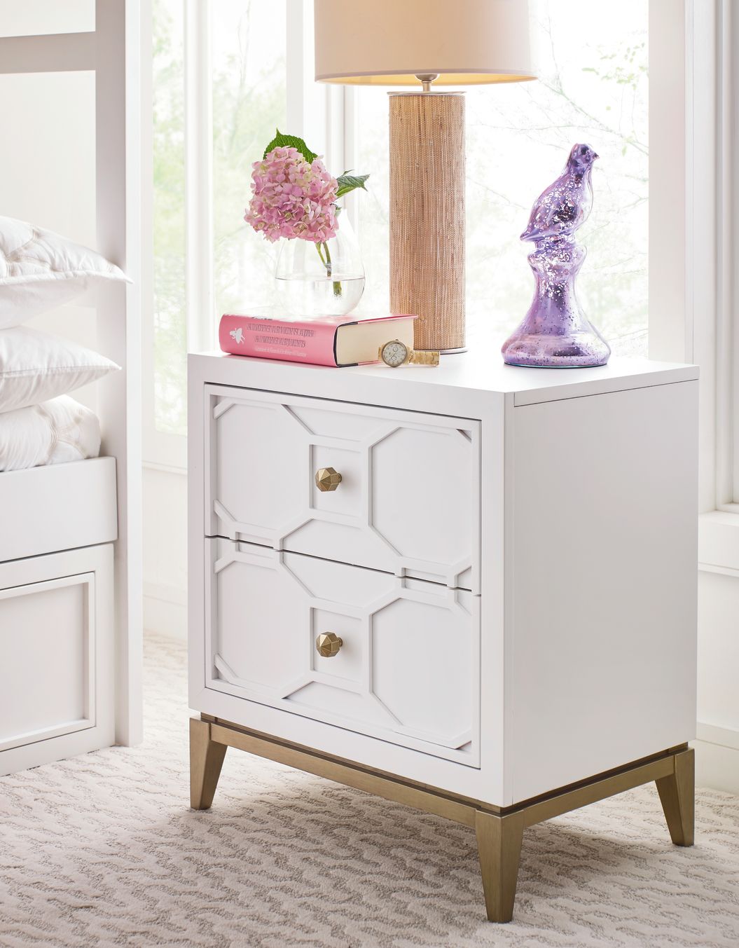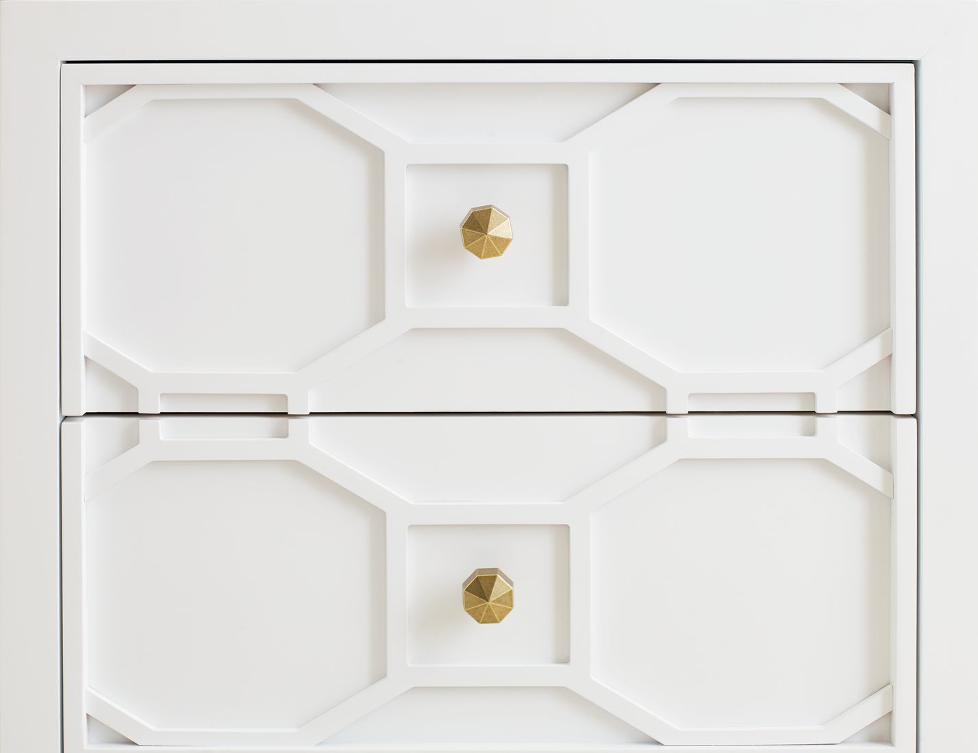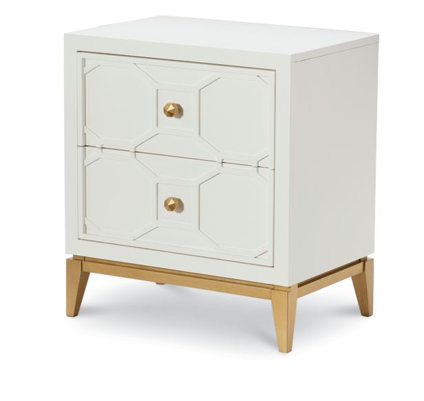 The clean, transitional lines of the white finish are offset with gold accents and Soft Gold Finish Knob hardware, making each piece as warm and inviting as it is stylish.