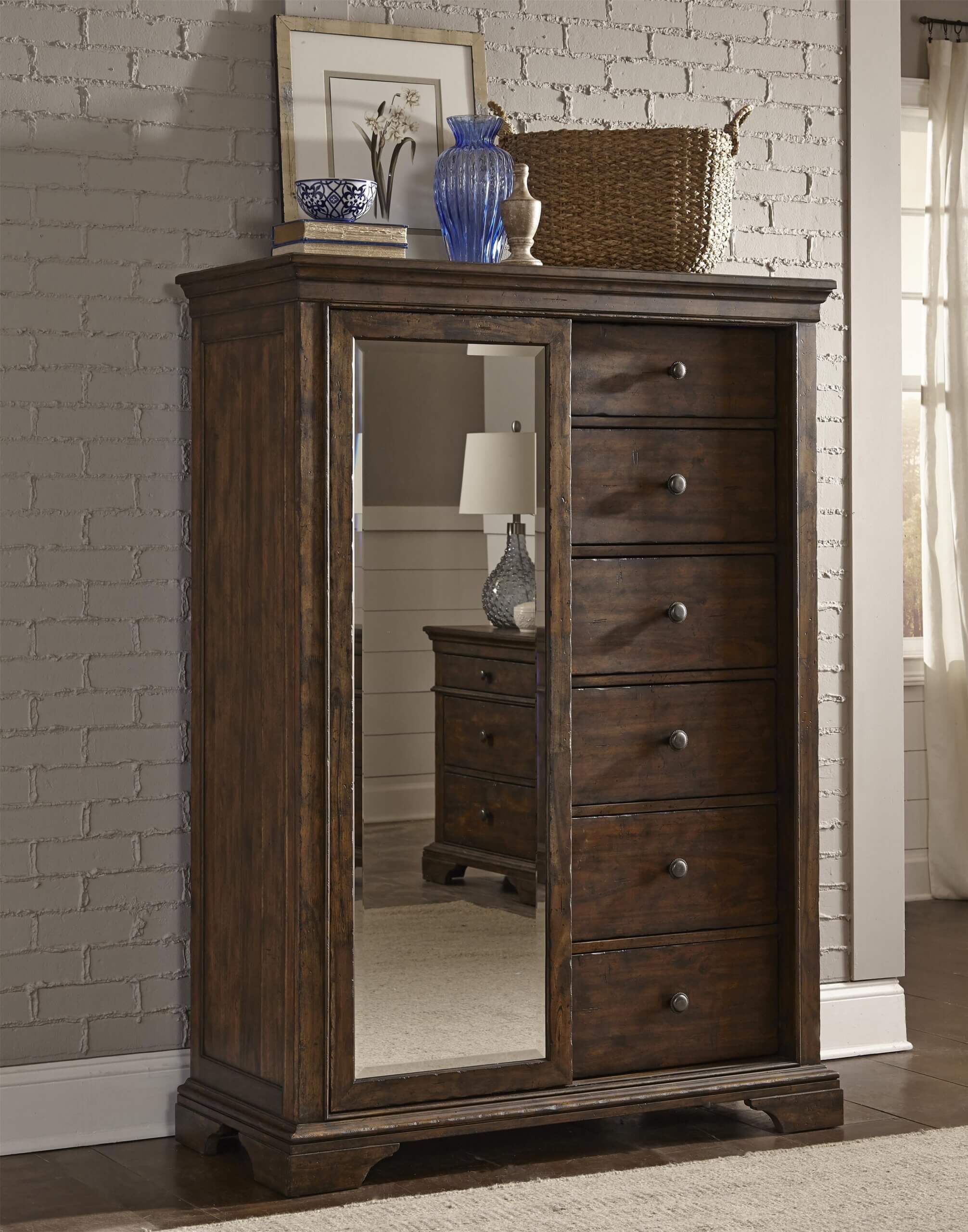 - Tulsa Door Chest (sliding mirror, 6 drawers, 3 shelves)