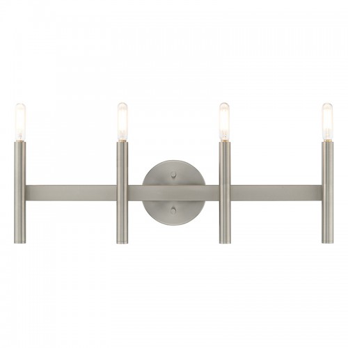 Exposed bulb sockets are fixed over a brushed nickel finish to create an eclectic look perfect for mid century modern or transitional spaces wanting an industrial touch.