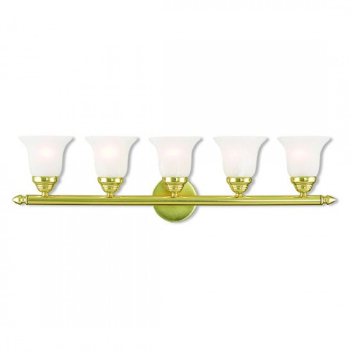 This clean and classic bath fixture design is ideal for bringing a bright new style to your bathroom space. It features a polished brass finish along with white alabaster glass.