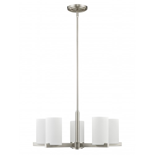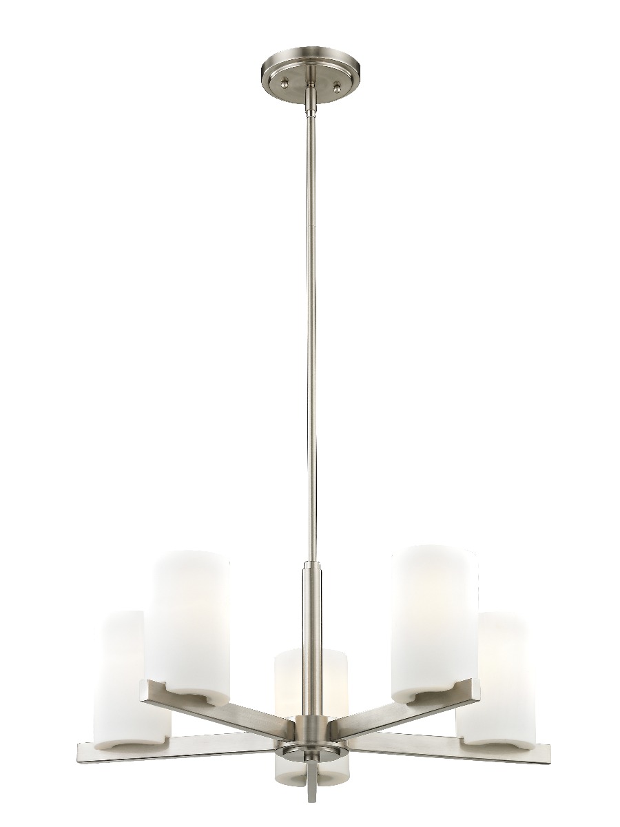 The minimalist Astoria collection draws the eye to the soft, warm glow of the light emitted from the cylindrical satin opal etched glass shades available in a subdued brushed nickel or soft olde bronze.