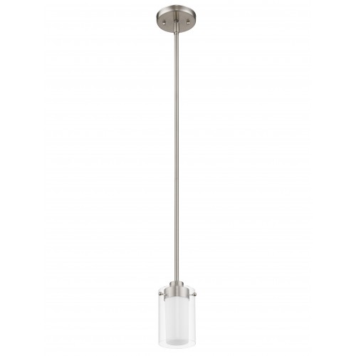 This brushed nickel finish brings sleek sophistication to this contemporary mini pendant. The clean lines are enhanced by the hand blown clear glass cylinders with opal centers. The double layer of glass adds a level of depth and visual interest to this transitional style light fixture.