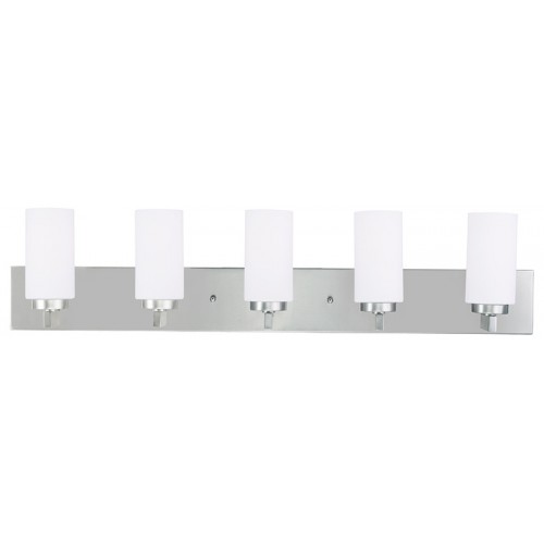 Tired of starting each day looking at the same, worn out bathroom lighting? Why not wake up to the brushed nickel finish and hand blown satin opal white cylinder glass of this five light bathroom fixture?