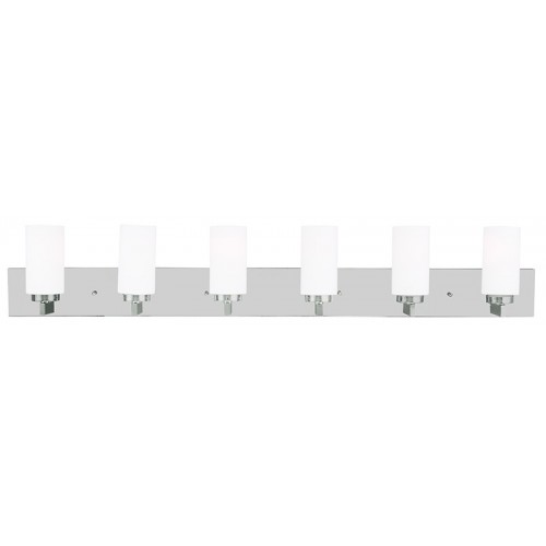 Tired of starting each day looking at the same, worn out bathroom lighting? Why not wake up to the polished chrome finish and hand blown satin opal white cylinder glass of this six light bathroom fixture?