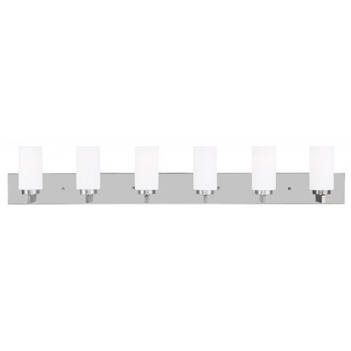 Tired of starting each day looking at the same, worn out bathroom lighting? Why not wake up to the brushed nickel finish and hand blown satin opal white cylinder glass of this six light bathroom fixture?