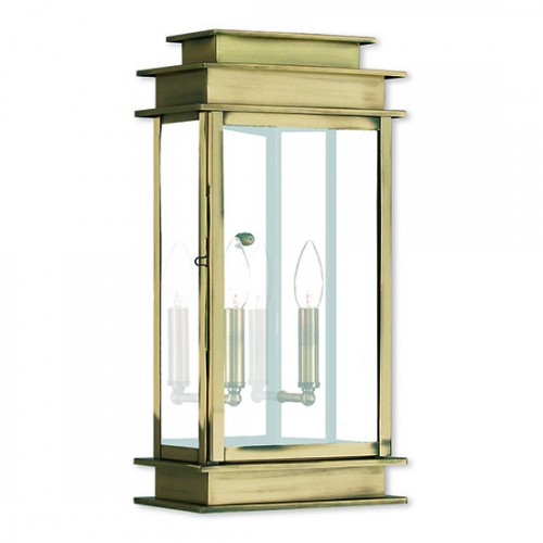 The Princeton collection is a fresh interpretation on the classic English pocket lantern. Hand crafted solid brass, our Princeton fixtures are built for lasting beauty. This outdoor wall light features an antique brass finish and clear glass. This old world charm is built to last.