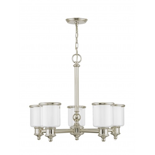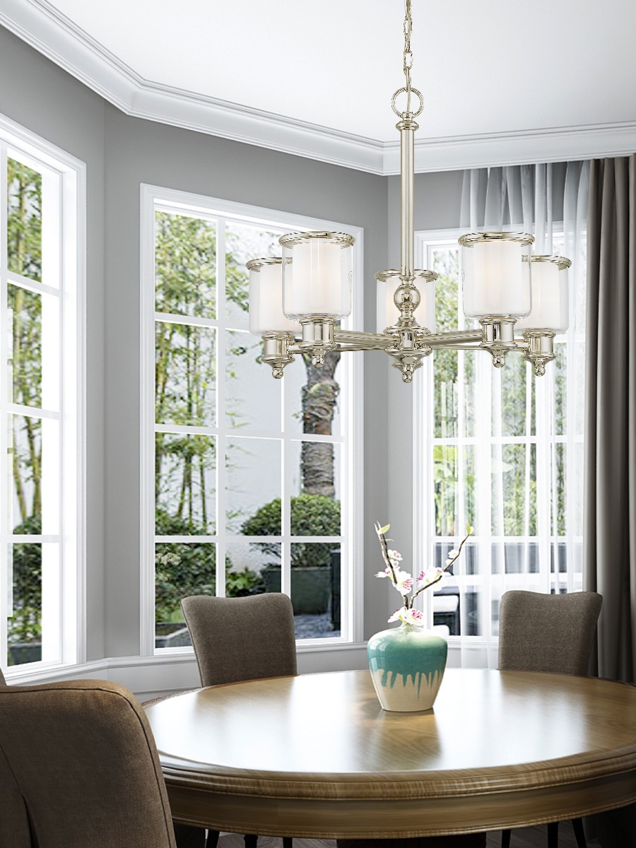 A magnificent home lighting choice, the Middlebush collection five light chandelier effortlessly blends traditional style with clean, modern-day materials.