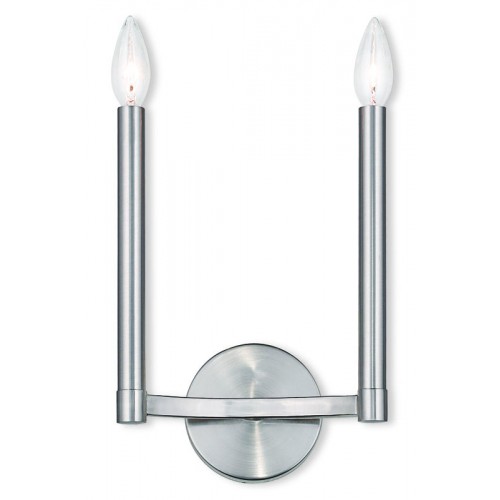 Simply formed yet elegant in design, this two light wall sconce commands attention. From the clean lines to the sleek tall candle sleeves, this wall sconce makes a dramatic statement.