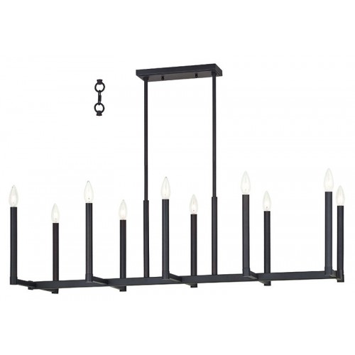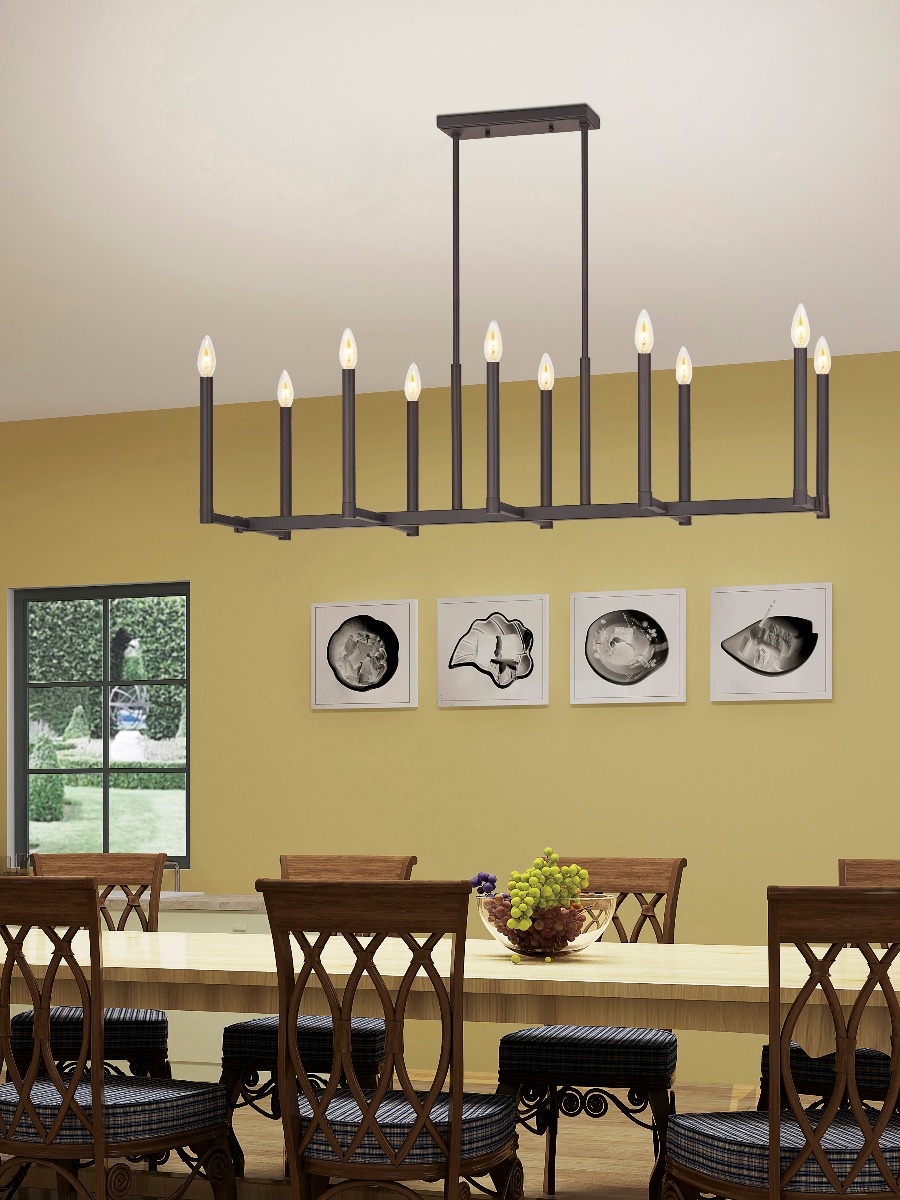 Simply formed yet elegant in design, this ten light linear chandelier commands attention. From the clean lines to the sleek tall candle sleeves, this linear chandelier makes a dramatic statement.