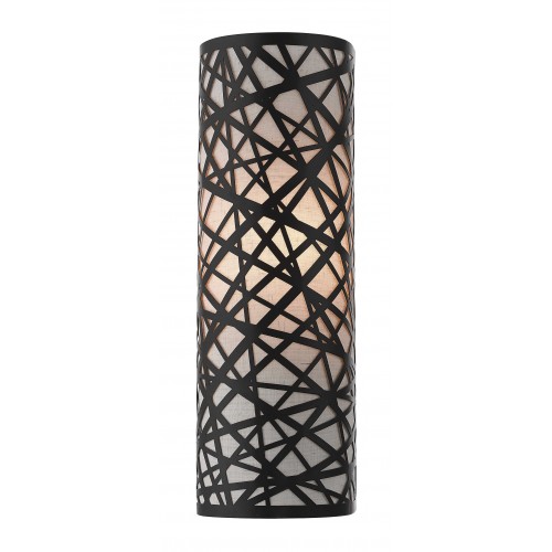 This spectacular bronze wall sconce will take your home decor to the next level. Inspired by a bird nest, the laser-cut metal sheath surrounds an oatmeal fabric hardback shade.
