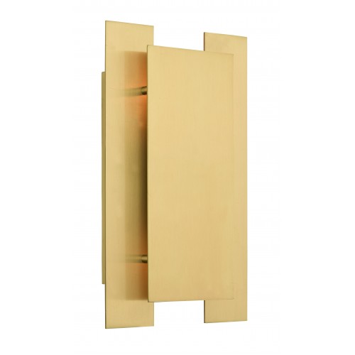 This stylish, modern two light wall sconce features a chic look and can be mounted either vertically or horizontally. Its up-and-down light design is created with square and rectangular panels of solid brass in a satin brass finish.