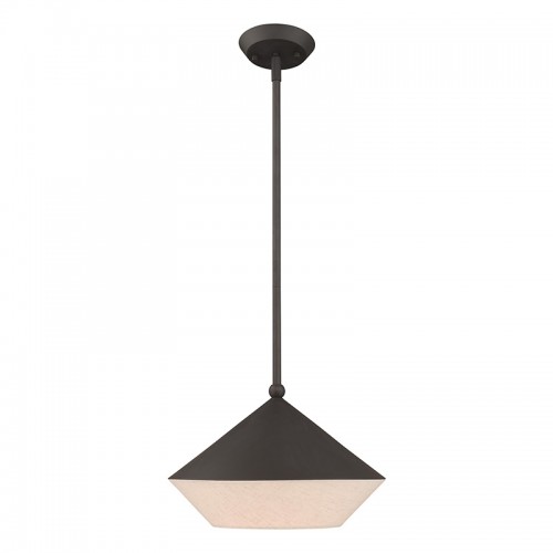 The unique design of the Stockholm mini pendant merges different materials to create a truly eye-catching fixture. The bronze body is accented by a hand crafted oatmeal hardback shade around the bottom creating a distinct mid century modern look.