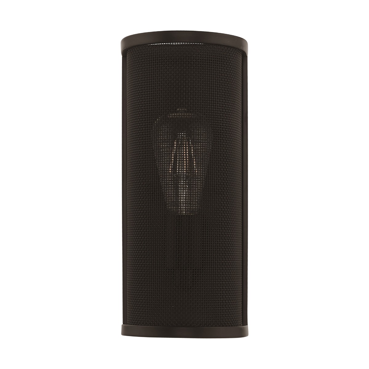 Elevate your modern living area with this urban bronze one light wall sconce featuring a stainless steel mesh shade.