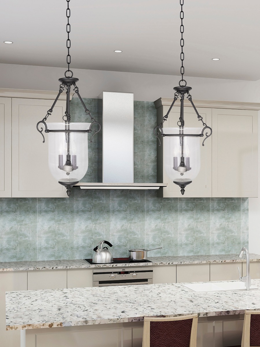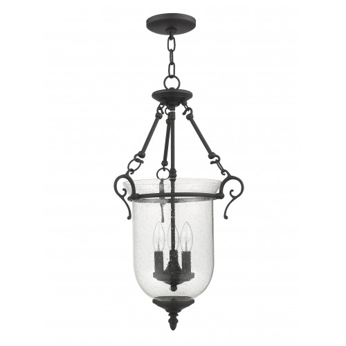 The Legacy collection offers a chic update to traditional style lighting. This chain hung lantern design comes in a beautiful black finish with a traditional seeded glass bell jar adding style.