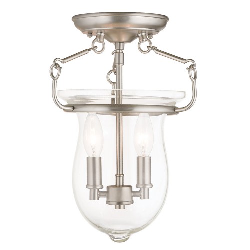 Clean, simple, and classic, you can't go wrong with our Canterbuty semi flush mount bell jar lantern in brushed nickel.